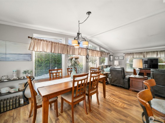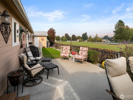 Stunning well taken care of home ready for new owner in Meadowridge 55+ Park. Cozy living area opens up to the dining room and kitchen with a spacious outdoor patio. Primary bedroom includes private bathroom, you also have a second bedroom, and open office area that could be utilized as a sitting room, office or craft space. Charming, private sitting area outside to enjoy morning coffee, garden, or games with friends. Oversized garage is great for storage while still having room to park your car. Meadowridge offers a clubhouse and RV parking for residents.
