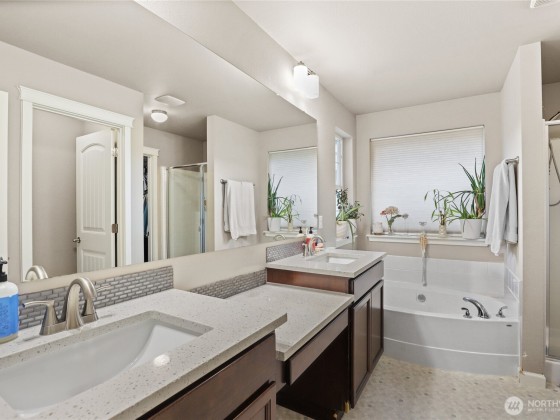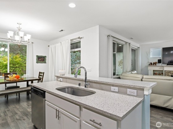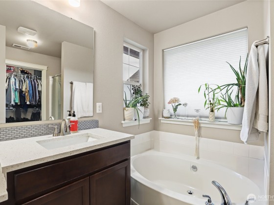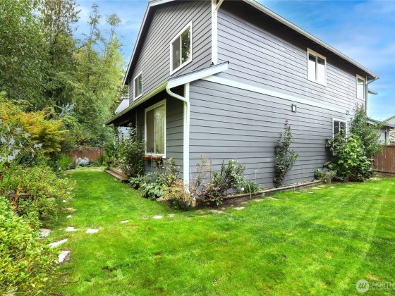 Spacious & stylish 4-bedroom home with a main level office/den & 3 full baths, including one on the main floor. The open-concept kitchen features a large island & flows into the living room with a cozy fireplace and the dining area, which leads to a peaceful covered patio. Upstairs offers 3 bedrooms, a full bath, laundry room, & a stunning primary suite with accent wall, walk-in closet, and a 5-piece ensuite with dual vanities, soaker tub, and private water closet. Enjoy a fully fenced backyard backing green space for added privacy. Located in a desirable neighborhood with parks, schools, shopping nearby, and quick access to Hwy 16 for easy commuting around the Kitsap Peninsula. Mortgage savings may be available for buyers of this listing.