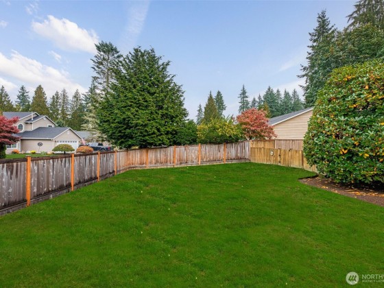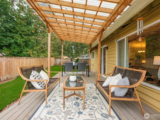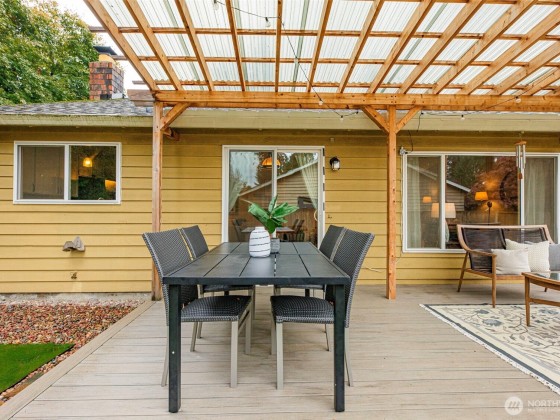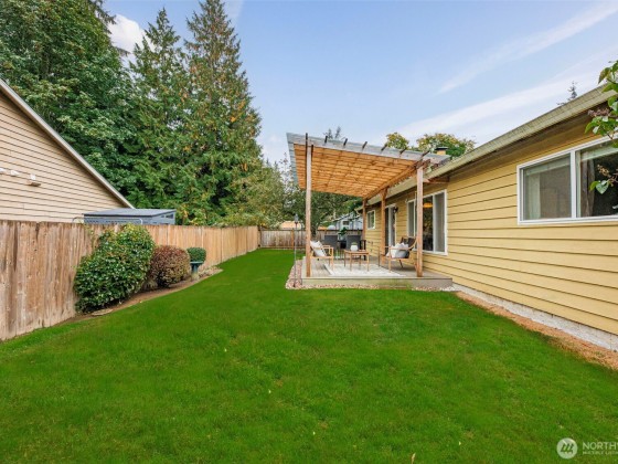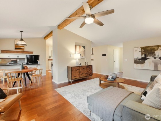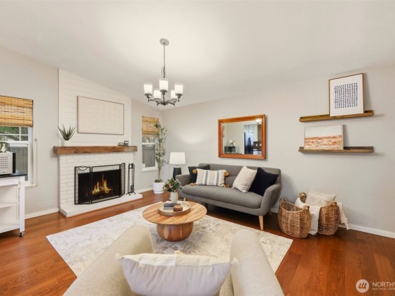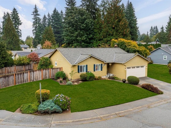 Welcome Home to this beautifully updated 3-bed, 2-bath rambler in desirable Silver Firs Community. Warm natural light pours through large windows, highlighting the vaulted ceilings, open floor plan, & rich engineered hardwood floors that flow seamlessly throughout. Kitchen features under mount lighting & full tile backsplash. Primary suite offers a serene spa-like 5-piece bath w/ heated slate floors, marble details, & custom built-ins. Newer roof, windows, garage door, & front door. Step outside to a spacious backyard where a new deck & covered awning invite you to savor peaceful mornings or cozy evenings year-round while staying dry. Room to add RV parking. Great community parks, playfields, dog park, shopping, & sidewalk streets. Turn Key