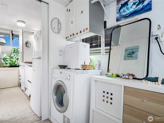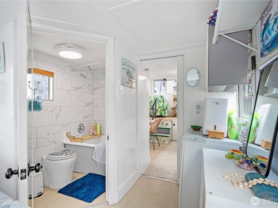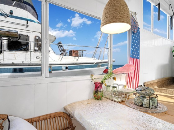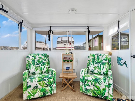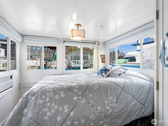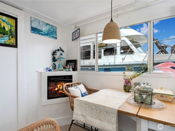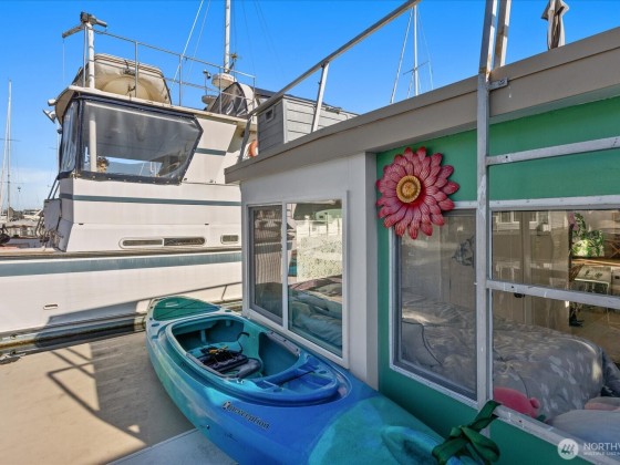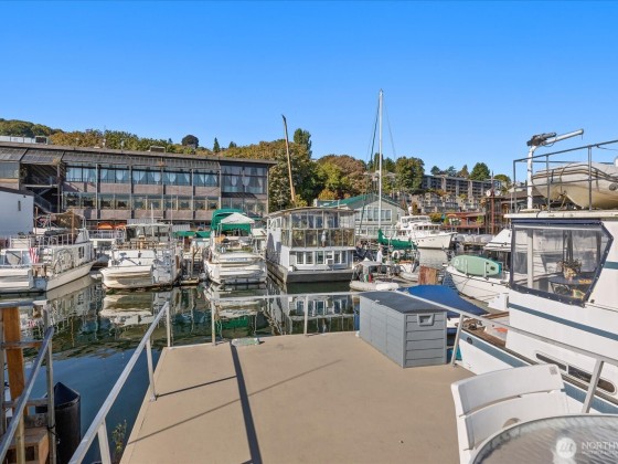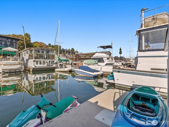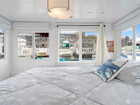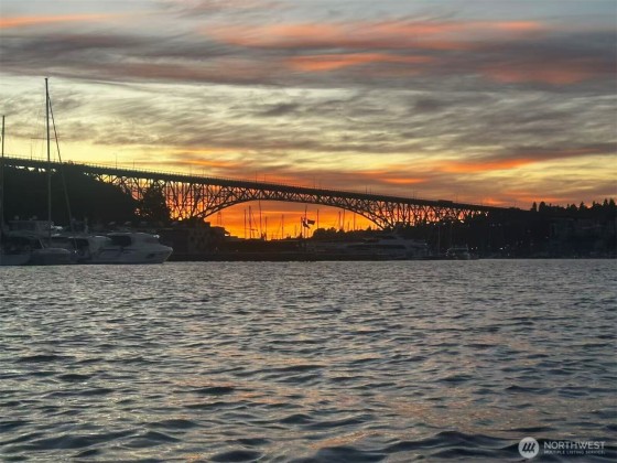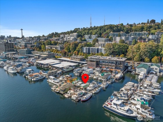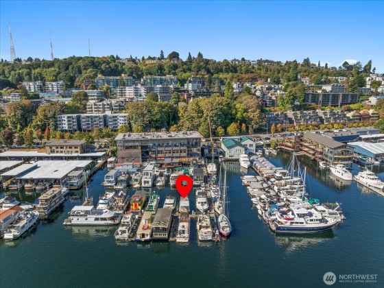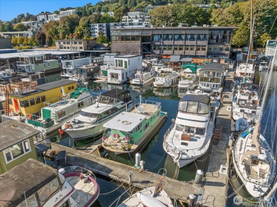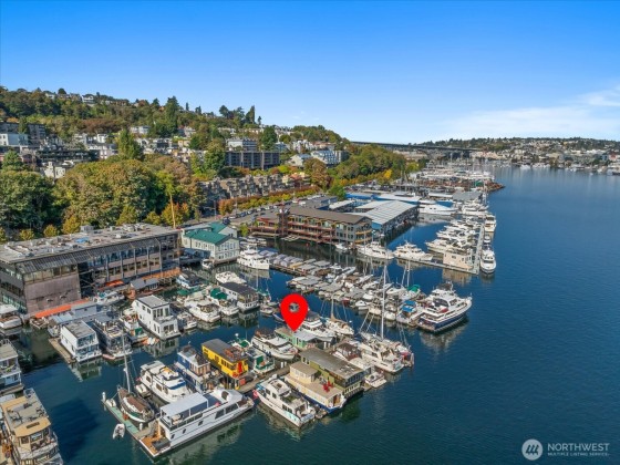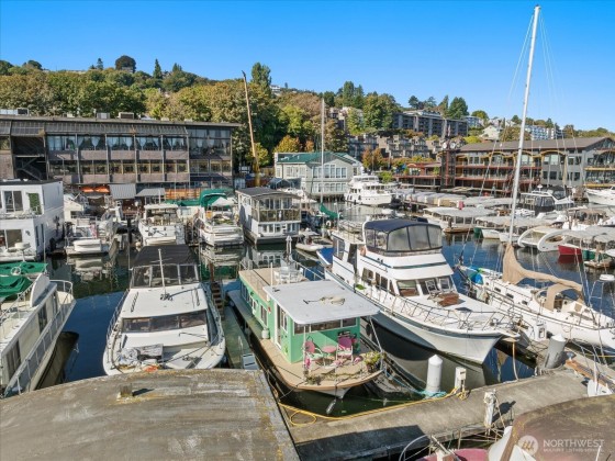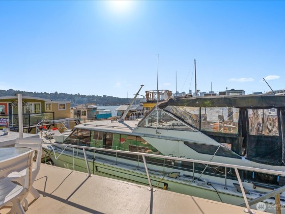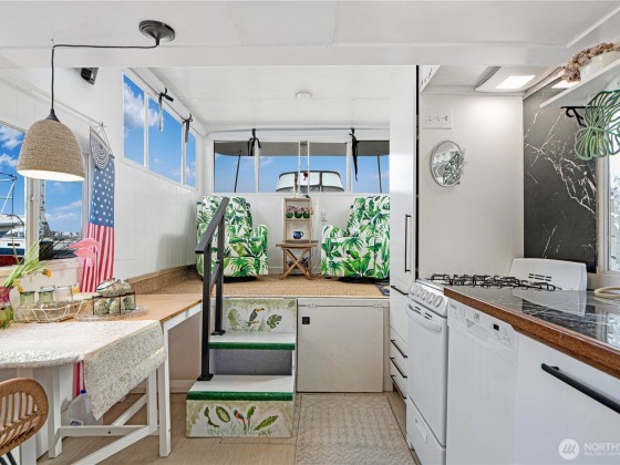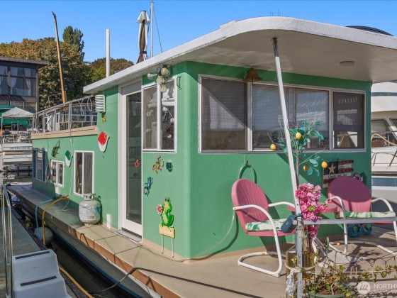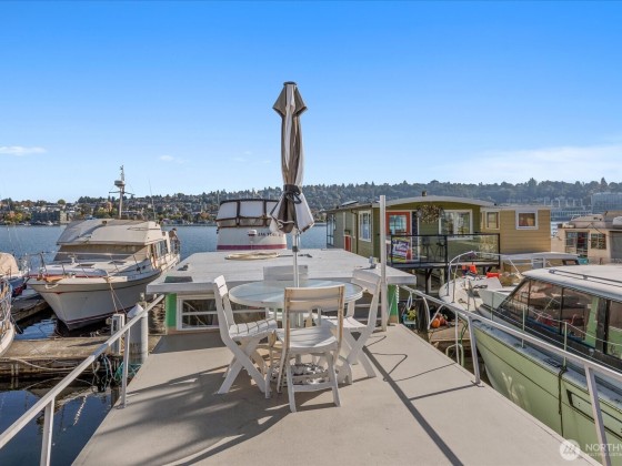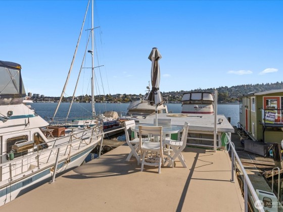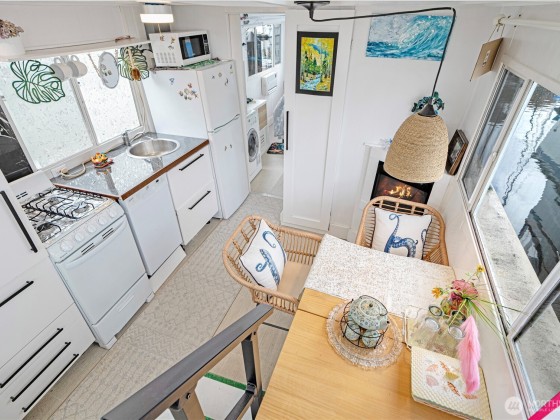 Welcome to Cubana — a stunning, fully remodeled and fully furnished floating home filled with natural light and modern charm. Step inside to a lofted living area with breathtaking Lake Union and city skyline views, a cozy fireplace, and a beautifully updated kitchen with sleek new appliances, quartz countertops, and stylish flooring. The spacious bedroom offers ensuite laundry and a luxurious marble-finished bath with a deep soaking tub. Enjoy two lower decks plus a full rooftop deck with panoramic lake, Gas Works, and downtown views—perfect for morning coffee or sunset gatherings. All decks resurfaced (3/25); hauled-out and bottom-painted (9/23). Easy parking, water/gas/electricity included, pets and rentals allowed. FOWR #715.