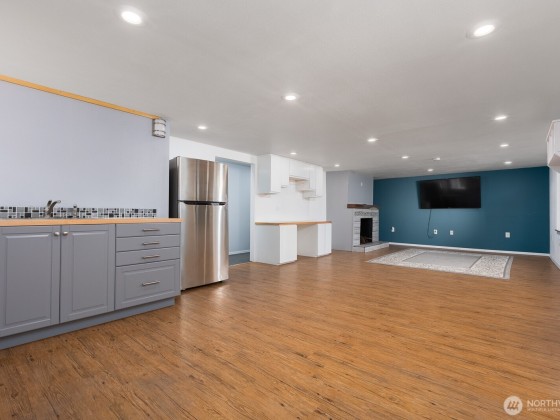 Welcome to this charming Burien home on a huge 1/3-acre lot with a fully finished basement & an oversized detached shop/garage. Remodeled over the years to create an inviting floor plan with custom kitchen, stainless appliances, solid surface countertops & an island. The main floor includes 3 bedrooms & a full bath. The lower level has a walk out basement to patio with firepit. The basement has a 3/4 bath, bedroom with walk-in closet, family room with wet bar (could be converted into a mother-in-law), large laundry room with sink, and bonus space, ideal for an office. Interior/exterior of home painted recently. Other updates include high efficiency A/C and tankless water heater, electrical, high-speed wiring and a new front lawn & porch.