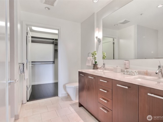 Experience the perfect blend of modern luxury and timeless design in this stunning condo at Bellevue Towers.Boasting sweeping city views and high-end finishes throughout,this home offers an elevated lifestyle in the heart of downtown Bellevue. The open-concept layout features gleaming hardwood floors,a chef-inspired contemporary kitchen with calacatta quartz countertops, and exquisite cristallo backlit counters in the den and bathrooms.The spacious king-size primary suite includes a generous walk-in closet and a luxurious ensuite bathroom with room for two. Enjoy floor to ceiling windows,soaring 9-foot ceilings & a private deck. This smart home is outfitted with automated blinds,lights,Nest thermostat for effortless control and convenience.