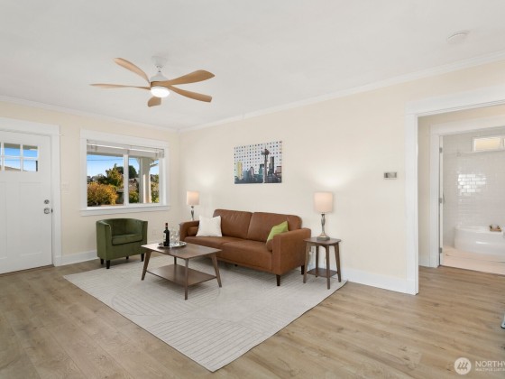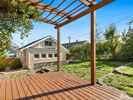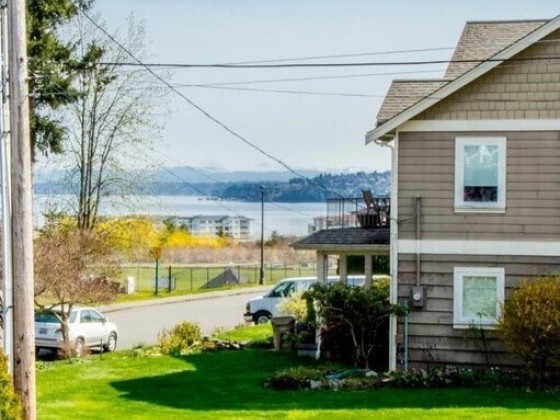 North Ruston charmer oozes curb appeal with yellow & white accents & spacious front yard bounded by white picket fence. Sound views from the living room & two bedrooms. Thoughtfully refreshed featuring an open floorplan living room & kitchen with new flooring, cabinets, counters, & appliances. Two generous size main floor bedrooms & updated bathroom, along with a laundry/utility space round out the main floor. Upstairs is a large bedroom & a bonus space that would serve well as an office or nursery. Large, terraced backyard with deck & pergola for fun outdoor entertainment. One car garage off the alley needs some TLC, but is perfect for an ADU conversion. Walk to the shops, restaurants, & vibrant Point Ruston waterfront! Welcome home!