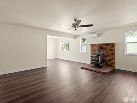 Welcome to a stunning, fully transformed 4-bedroom home on 2.5 private acres! This property is a true turnkey opportunity with a no-expense-spared renovation. Enjoy the peace of mind that comes with a NEW roof, insulation, LVP floors, slider door, and interior and exterior paint. The fully remodeled kitchen features butcher block counters and SS hood/dishwasher/stove, all illuminated by new lighting fixtures throughout. A versatile bonus room with a propane stove and a living room with a huge wood stove create a warm, inviting atmosphere. Outside, your private park awaits with a firepit, tire swing, treehouse, 864sqft 2 bay barn, garden, and chicken coop!Even has ductless A/C! Located in the County but minutes from NAS Whidbey and the City!