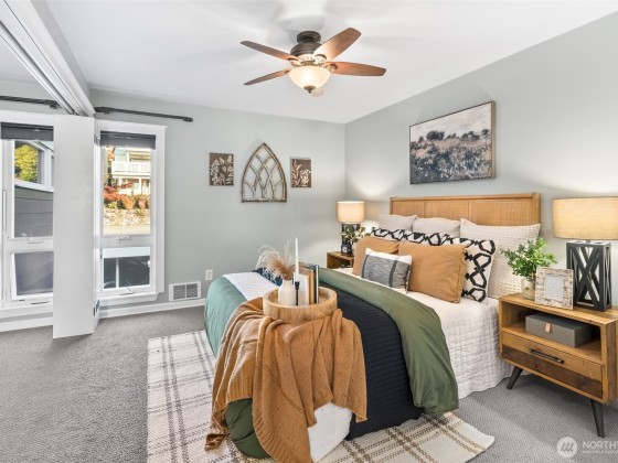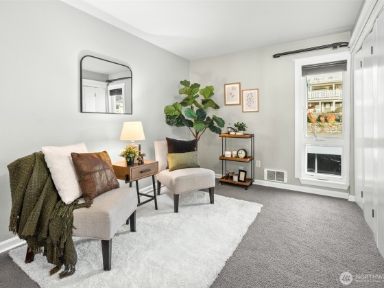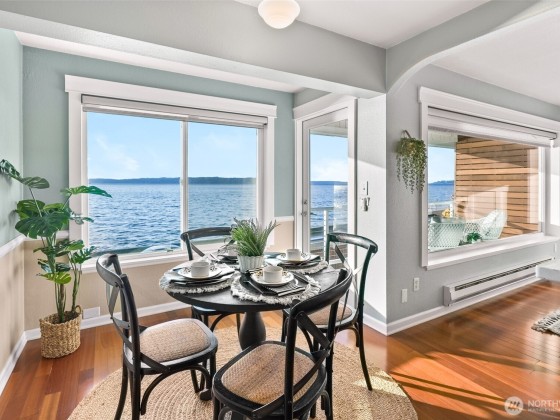Perched above the Puget Sound with breathtaking 180° water views, this remodeled Redondo Beach condo offers the best of coastal living! Enjoy light-filled living spaces, an updated kitchen, and a sunlit dining nook showcasing panoramic views! Two flexible bedrooms feature an accordion wall that can open to create a large primary suite or close for a 2nd bedroom. Includes in-unit laundry, covered parking, and two storage units. The building underwent a complete studs-out rebuild in 2022-new roof, siding, insulation, windows, and more! Low HOA dues cover cable/internet, WSG, exterior maintenance, pool, sauna, and clubhouse. The Redondo Beach community features a stunning waterfront boardwalk & parks! Minutes to the new light rail and airport!