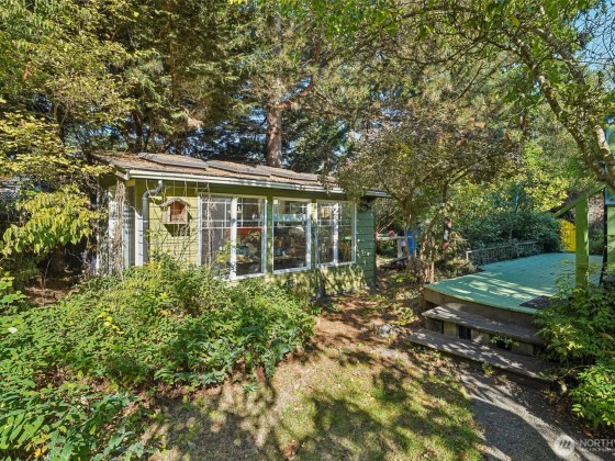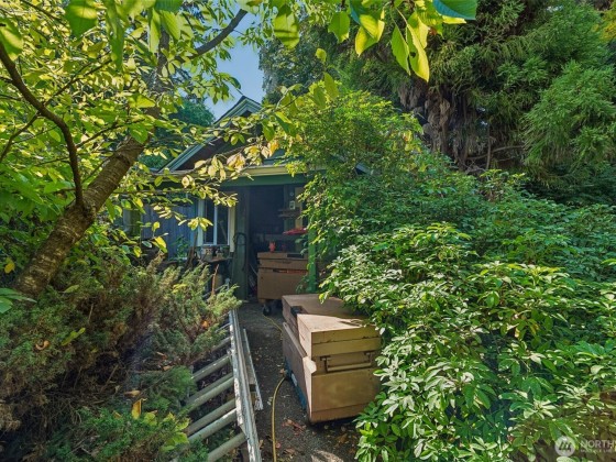 Ever dreamed of living in a secret garden? This enchanting 1930 home offers 3 bedrooms, an office, a sunroom, and two versatile outbuildings—nestled within a certified wildlife sanctuary yet just moments from Shoreline amenities and the light rail. Lovingly maintained by a skilled carpenter and gardener, this home blends timeless charm with endless potential. The laundry room could be converted into a second bath, while one shed serves as a workshop and the other could become a DADU or creative studio. Enjoy new paint, carpet, and tub/shower, plus skylights, electric fireplace, and a water filtration system. The lush, mature landscaping makes this property truly magical!