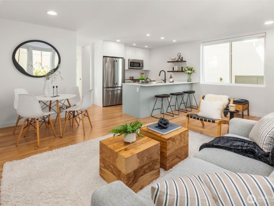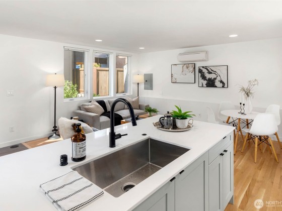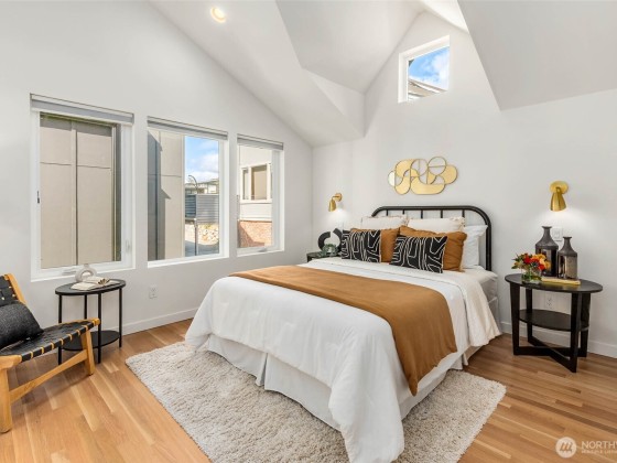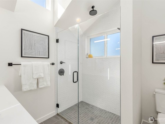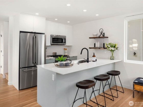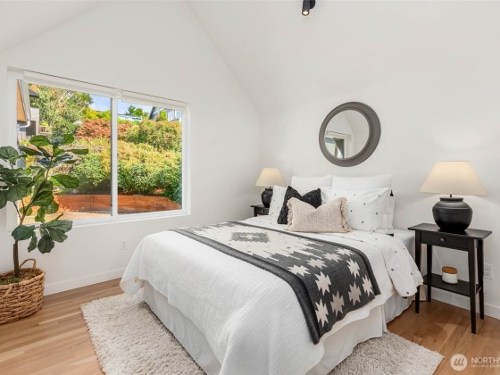 Beautifully 3-bed 1.75-bath home in Seattle’s sought-after North Beach community, an opportunity you don't want to miss! Fresh, modern, & move-in ready w/high-end finishes, warm oak floors & open-concept layout designed for today’s lifestyle. Gourmet kitchen, perfect for hosting, seamlessly connects to a spacious, fully fenced yard w/peek-a-boo views of the Sound—ideal for BBQs & relaxing. Convenient main-floor bdrm offers flexibility, while upstairs are 2 additional bdrms including the tranquil primary suite w/vaulted ceilings & generous closet. Enjoy exclusive access to North Beach’s private community beach. Off-street parking w/EV charging & minutes to Ballard, Golden Gardens, Carkeek Park & access to I-5 & Hwy 99.