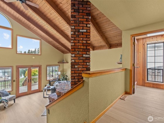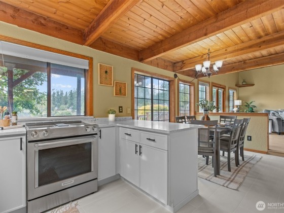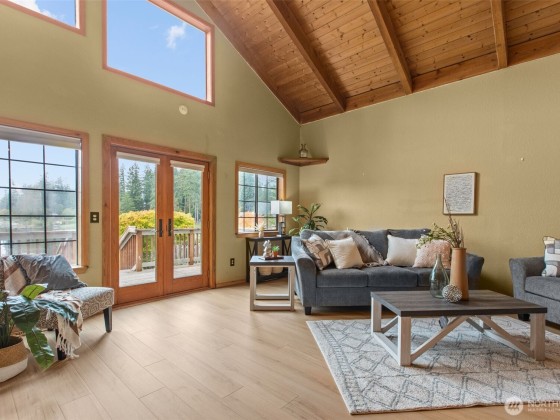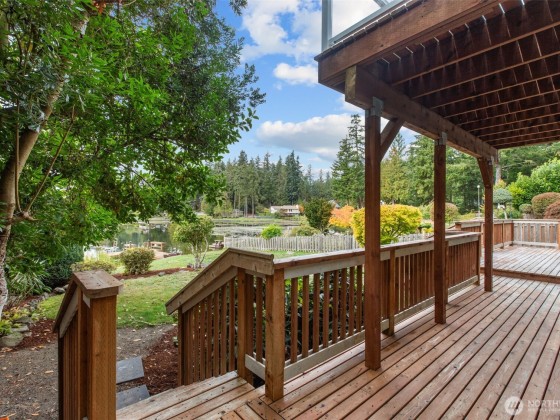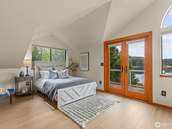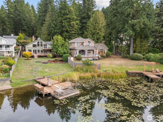 Embrace lakefront living on tranquil Wildcat Lake! This beautifully updated home features vaulted ceilings and a striking brick fireplace anchoring the spacious living room. The renovated kitchen and bathrooms offer modern comfort, while the private primary suite boasts its own balcony overlooking the water. Enjoy your own private dock for kayaking, paddle boarding, or casting a line on this rainbow trout–stocked lake. The driveway boasts space for RV parking and a large covered carport perfect for guest parking or extra storage—all just minutes from Silverdale shops, Bremerton, and the Naval Yard.