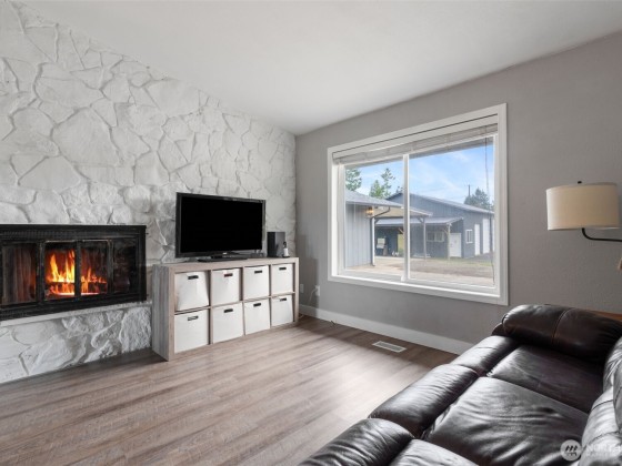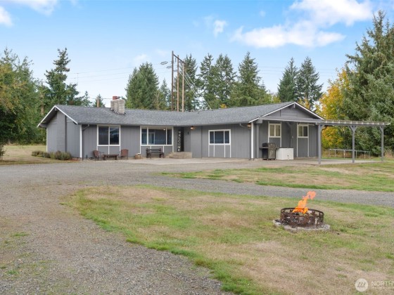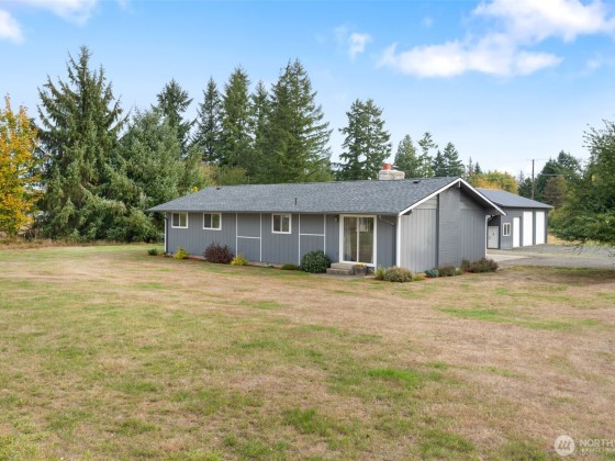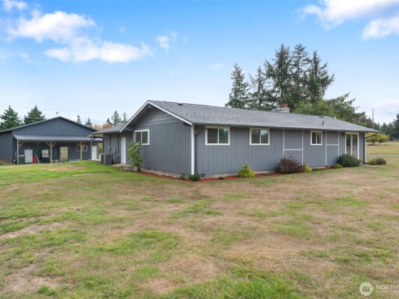 Charming country rambler on nearly 7 acres! This 3-bed, 2-bath home offers both comfort and versatility with an open living room, spacious family room, and a converted garage turned rec room. Stay comfortable year-round with a heat pump and fireplace perfect for cozy evenings. Outside, enjoy a massive 36x48 shop, 5-stall machine shed currently used as batting cages, 2 carports and an abundance of fruit trees. Wired for hot tub. Country living just minutes to town. Room to work, play, and grow—your peaceful retreat with space for all your hobbies and dreams!