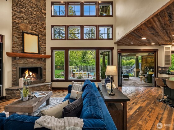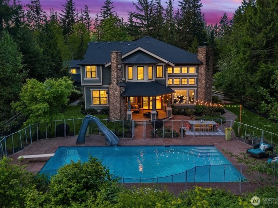 Private Snoqualmie Luxury Estate on Acreage | Pool, Guest Home & Outdoor Adventure Access. Discover the ultimate PNW lifestyle in this extraordinary estate. Set privately at the end of a quiet country lane, this home blends high-end craftsmanship w/ direct access to outdoor adventure. Just mins from I-90 & Sno Ridge amenities, yet worlds away from noise & traffic, this property offers space, privacy, luxury & connection to nature. Inside, the 2-story Great Room features a soaring stone fireplace & wall of windows that flood the space w/ natural light. Entertain & unwind in resort-style amenities & enjoy custom high-end finishes throughout. 2 executive offices, media room. 4-car pull-through shop. 1100 sf 1-bed MIL. No HOA. Pre-inspected.