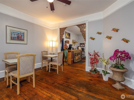 GREAT DOWNTOWN OPERATING INN and RESTAURANT.. Incredible opportunity to own and operate a fine dining restaurant w/ a 3 room boutique hotel with separate detached 1 bedroom cottage in historic Coupeville. Inn at Penn Cove has 2 second level furnished rooms w/private baths, 1 furnished patio deck room with bath, and detached furnished 1 bedroom cottage with kitchen and bath. Operate restaurant, live in cottage, rent out 3 guest rooms for additional income. Property needs some tender loving care. Buyer to confirm w/City Planner and other municipals for potential to create binding condominium site plan for Historic Inn and Historic Doctor’s cottage - a potential to create two separate sellable properties. SELLER WILL CONSIDER OWNER FINANCING!