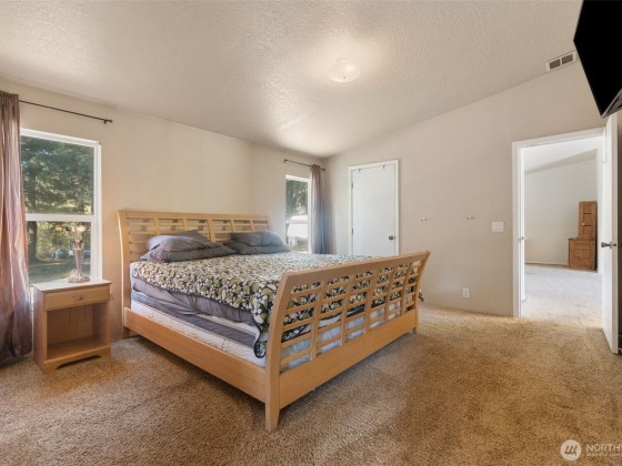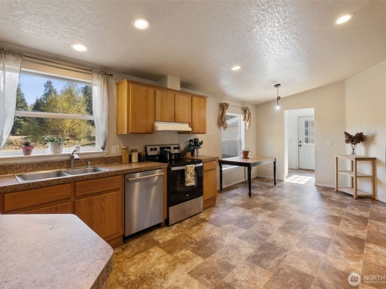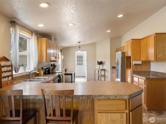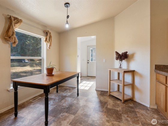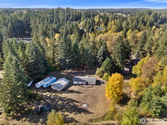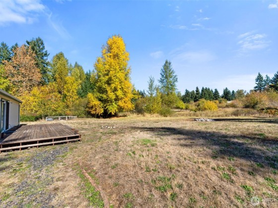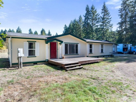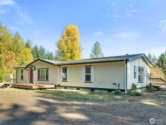 Country Comfort on 3.36 acres in Yelm! Spacious 3-bedroom, 2-bath manufactured home, offering 1,620 sq. ft. with a split-bedroom floor plan, large kitchen with tons of storage, spacious living room and open concept dining area. Primary bedroom includes extra space for office or sitting area, plus a corner soaking tub in the primary bathroom. Enjoy year-round comfort with a heat pump and relax on the two large decks—front and back, perfect for soaking in the peaceful setting. The 28x36 propane-heated shop provides plenty of room for storage, hobbies, or projects. Lot includes RV parking with hook-ups. With room to set up for animals, this property offers space, functionality, and country charm, all ready for its new owner!