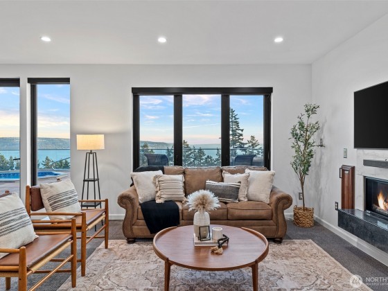 Experience Whidbey Island luxury with exceptional craftsmanship in this custom home with breathtaking views of the Cascades, ocean, and brilliant sunrises and sunsets. Every detail, from the Brazilian quartzite island to thoughtfully designed outdoor spaces that capture the view from every angle, sets this home apart. Smart-wired for effortless living with automated lighting, blinds, climate, and a saltwater spa, all easily controlled in person or from afar. A true masterpiece of comfort, design, and island serenity.