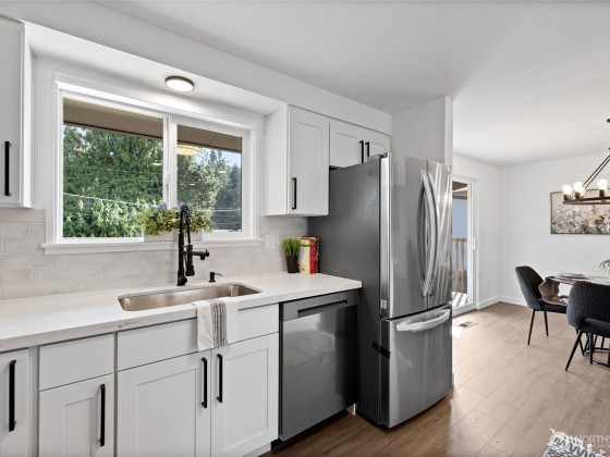 Tastefully REMODELED 4 bed & 3 bath home. All bedrooms are good sized. Freshly painted inside and out and New roof leaves nothing but to enjoy. Upstairs features the living room, the Primary bedroom with newly remodeled 3/4 bath, 2 bedrooms and another remodeled bath. You will love the kitchen with new cabinets, counters and an island for all your culinary creations! The dining area leads out to an enormous entertaining deck and down to the backyard with plenty of outdoor garden spaces. Downstairs is another bedroom & bath and large recreation room, an attached garage and covered patio. A short 20-minute drive to JBLM. Minutes to Hwy 16. All of this found in a quiet neighborhood that feels like neighborhoods ought to be. Come see it today!