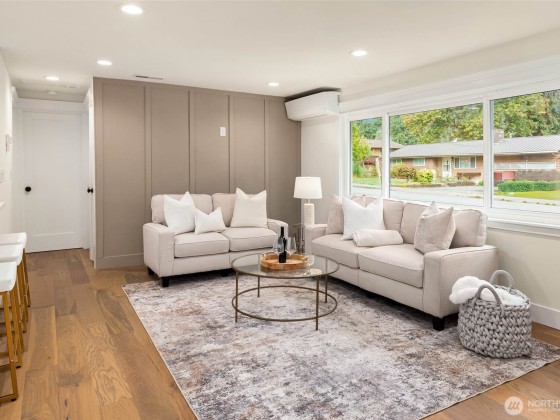 Charming new construction like - fully renovated rambler. This 3 bed/2 bath is perfect blend of comfort, functionality and modern finishes. Enjoy open kitchen w/ natural stone countertops & backsplash, SS appliances & sparkling new cabinetry. Primary ensuite boasts oversize frameless luxury shower w/ walk in closet. Year-round heating and cooling with central A/C. Natural Oak hardwoods throughout, vaulted ceilings, freshly painted inside and out w/ everything brand new - every detail thoughtfully designed. Step outside to private patio on large level lot, professionally landscaped with ample RV parking space & possible DADU (buyer to verify) or Adult Family Home. Prime location! Move-In Ready! This won’t last long!