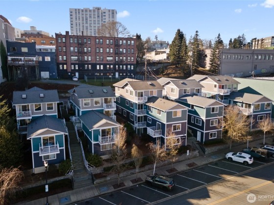 Motivated seller! Price reduced price by $25,000 and seller is willing to cover 1 year of HOA dues with full price offer! Discover urban living at its finest in this beautifully maintained downtown Tacoma condo! Boasting views of Commencement Bay, and the Port of Tacoma, this ground-floor unit offers a seamless single-story layout with spacious living areas, brand new laminate flooring throughout, and a gourmet kitchen featuring granite counters and stainless steel appliances. The primary bedroom is a retreat with a walk-in closet, private patio access, and a stylish jack-and-jill en-suite. Furniture is negotiable for a move-in or rental-ready experience. HOA dues cover water, sewer, and refuse.