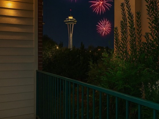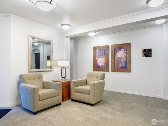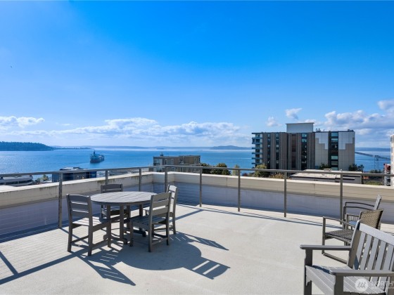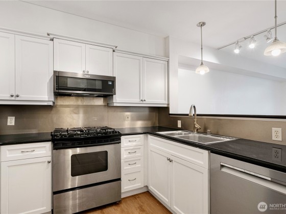 $346 per month HOA dues include w/s/g, gas & earthquake insurance! With garage parking spots in a prime Queen Anne location—blocks to Climate Pledge, Seattle Center & more! This 608 sqft 1bed+den is located in IV West Condos, built in 2003. Features an open layout w/ soaring ceilings, natural light, gas fireplace & versatile den—ideal for WFH or guests! The updated kitchen features white cabinet, counter space, pantry & gas stove, new flooring throught the condo. The bedroom includes custom closet system & blackout shades. A spacious bath w/ modern finishes & oversized laundry room for extra storage. Covered balcony with space needle view; rooftop deck w/ sweeping city & Puget Sound views!