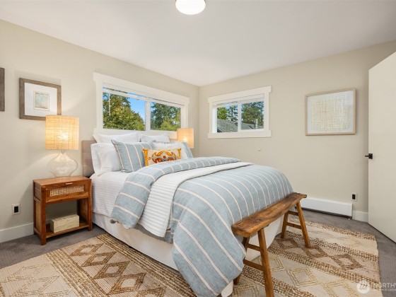 Enjoy quiet sanctuary in this beloved neighborhood in the heart of Bainbridge Island. Beautifully appointed home on 1.66 sunny, level acres. Expansive gardens surround multiple outdoor spaces, including fun sport court, firepit and stunning cottage style barn, an ideal home gym or hobby space. Don't miss the separate studio/office and a 3 car garage. Home features two private primary ensuite bedrooms on main, plus 3 bedrooms and full bath upstairs. Recently remodeled kitchen, granite, stainless appliances; Wolf Stove. Custom Ipe deck, hot tub and generator. Close to water’s edge and Gazzam lake trails. A rare opportunity to enjoy country living with modern convenience and a fabulous property to build memories.
