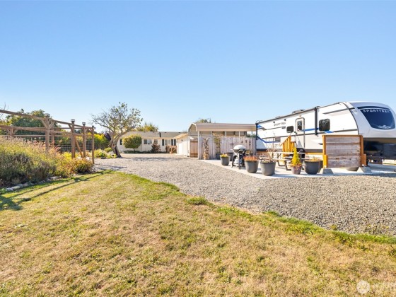 Tucked into a quiet corner of the charming Dungeness neighborhood, this well-maintained single-level home offers comfort and a touch of country serenity. Recent improvements include beautiful quartz kitchen counters, remodeled bathrooms with walk-in showers, a ductless mini-split system, and new insulation with vapor barrier in the crawlspace. 2 bedrooms plus a great studio bonus room. Detached garage offers plenty of workspace and storage. Outdoor amenities include a 30x31 concrete pad with full utility hookups for RV. Fenced garden area with Italian plum, apricot, fig, cherry tree, plus 8’ deer fencing. Located near the Cline Spit boat launch, low HOA dues cover the community drainfield, beach access and green space area.