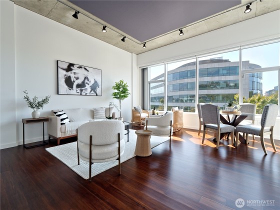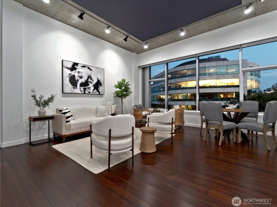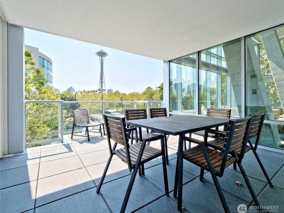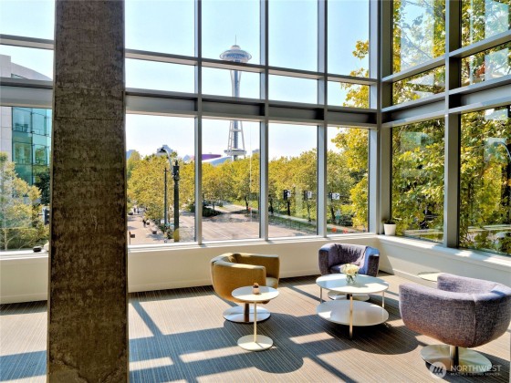 Uniquely updated 829 sq ft urban 1BR at LUMEN with top floor Space Needle views: bamboo hardwood floors, Bosch gas range/oven/dishwasher, new LG Instaview Fridge and Wash Tower. Expansive ceiling height , South facing windows provide abundant sunlight while blackout shades + solar shades allow precise control of views/privacy. Central AC. 1 parking spot in secure garage with car wash + storage. Amenities: concierge, owner’s lounge, Sky Bar, Theatre Room, fire pit, BBQ area. Unbeatable location above QFC, Konvene, Orange Theory, just steps to dining and the arts, Seattle Center & Climate Pledge Arena. Within walking distance to SLU, Queen Anne AND Downtown Preinspected & ready for you !