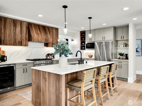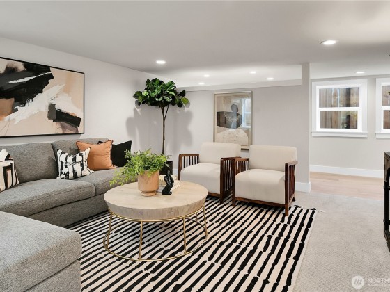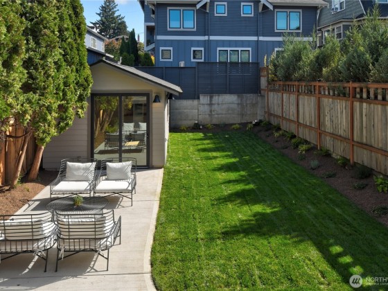 Perched at the top of Queen Anne Hill, this fully renovated 2025 Craftsman blends timeless charm with contemporary finishes. A welcoming front porch leads inside to an open island kitchen with slab quartz counters, 6-burner gas range, beverage fridge, pantry, and abundant storage. The great room offers a gas fireplace and built-ins, with a flex room and powder nearby. Upstairs: a luxe primary suite with walk-in closet and spa shower 2 additional bedrooms, full bath, and laundry room. Lower level hosts 2 bedrooms, full bath, media room, wet bar, and walk-out access to a fenced yard and patio. Detached studio perfect for office, yoga, or artist loft.