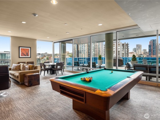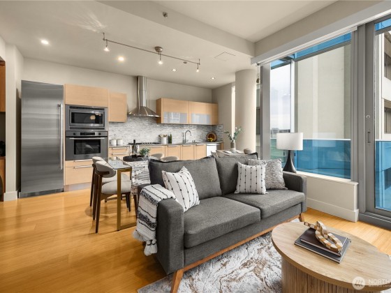 Get ready to be mesmerized by panoramic views of Downtown Seattle, Puget Sound & the Olympics through a wall of windows. Remarkable location at the renowned Olive 8 - central to everything Downtown Seattle has to offer. Large open living w/vaulted ceilings, gourmet chef's kitchen, pantry, office space, open dining, electric fireplace, spacious outdoor deck & custom built Murphy bed in the main living space. Separate primary bedroom area is private & features vaulted ceilings, custom oak cabinetry & slider doors. Bathroom has all the luxury finishes & too many to list. New HVAC system ($12K+), New W/D & much more! Unit also comes w/one parking space, one storage unit, owner's lounge & other Hyatt Hotel offerings. A must see & experience!
