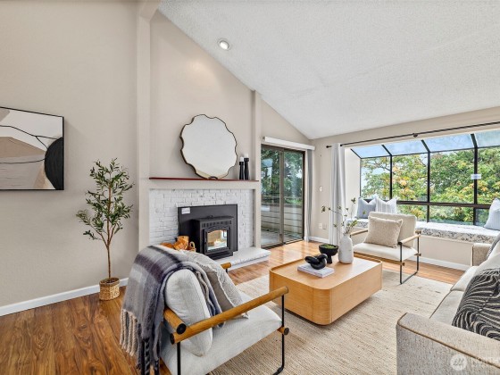 Top Floor, light-filled, end unit providing quiet respite with amazing Mt. Rainier and Kent/Tukwila Valley views. Spacious 2-bedroom, 2-bath unit that has been professionally refreshed with an updated kitchen, baths, flooring thruout, new paint, coffee/bar area, nice finishes. Enjoy the solitude of your end unit benefits - read a book in the window bench (w/a View), BBQ on your private deck (w/a View), or enjoy the community and all of its numerous features (pool, tennis, etc). Conveniently located to I-5 and I-405 freeways, with Southcenter shopping mall within view, and many dining options, convenient transit choices and entertainment opportunities within minutes. No pet restrictions, below rental cap with revitalized community features.