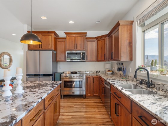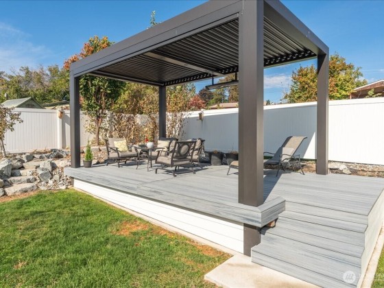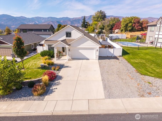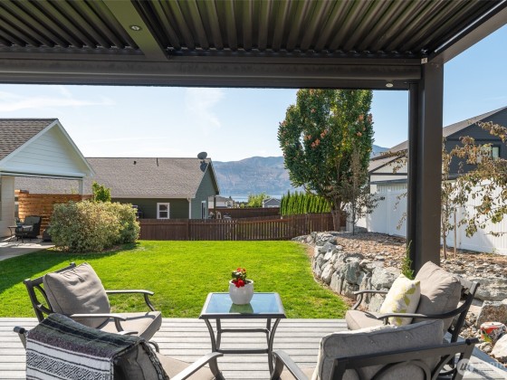Beautifully updated Lake Chelan home for sale in the quiet Summer Breeze neighborhood between Chelan & Manson! This 4 bed + office, 3 bath contemporary home offers main-level living, granite counters, luxury flooring, stainless appliances, upgraded lighting, modern pantry, MagnaTrack sun screens and a new fireplace. Enjoy lake views from the fabulous backyard deck with luxury StruXure motorized pergola- adjustable louvers, heater, & LED lighting. Fully fenced, low-maintenance yard with artistic rock wall landscaping, garden beds, pear trees & blueberries. Versatile structure for chicken coop, carport, or storage. Fiber internet, city utilities, no HOA. Perfect Manson WA real estate—ideal for year-round living or vacation retreat!