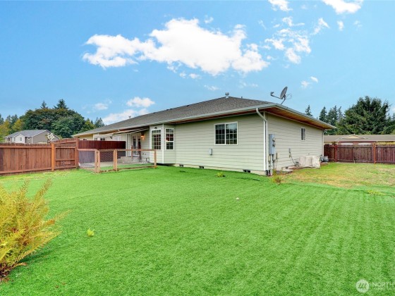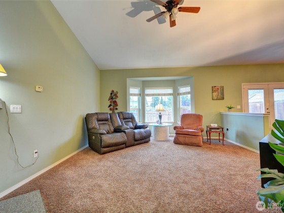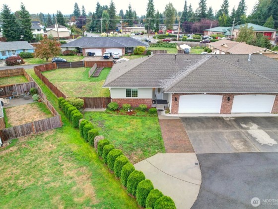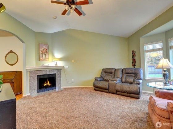 This beautifully maintained rambler-style condo offers an open floor plan with vaulted ceilings, a kitchen featuring granite countertops, stainless steel appliances, pantry, and eating bar. The kitchen flows into the dining and living areas with a cozy fireplace—perfect for cool evenings. The spacious primary bedroom includes a coved ceiling, double closets, and private ¾ bath. A second large bedroom and full bath provide extra space. Step through sliding doors to a private patio with retractable awning. The fully fenced yard, mostly turf, has room for RV parking or a garden oasis—ideal for entertaining and relaxing.