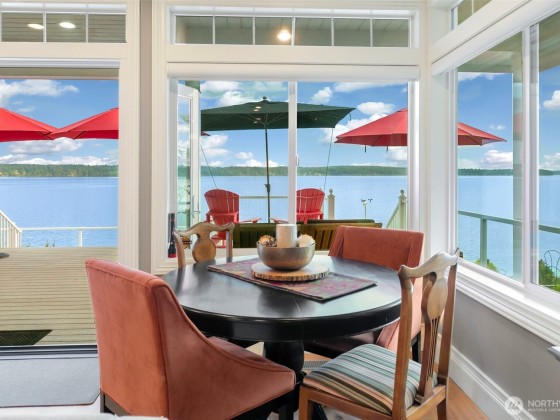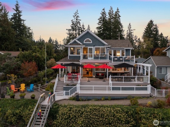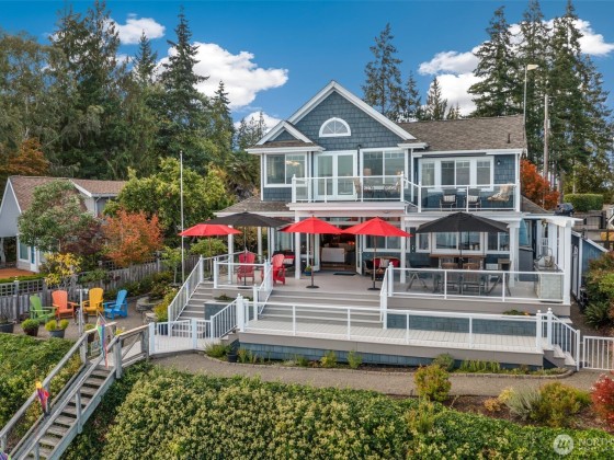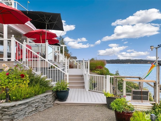 Sitting on the southern end of Stretch Island, this home has been lovingly designed to embrace the beauty of the Puget Sound. From the time you cross the bridge onto the island, you feel transported to a magical and peaceful place. Rebuilt in 2007, the home has been designed to maximize the glorious 180-degree views of Case Inlet, with Mt. Rainier front and center. Upper and lower decks allow for whale, eagle, otter, and seal watching. A staircase leads down to 75ft of cobble beach with oysters, clams-and a new bulkhead. Beautifully curated landscaping provides color and lush greenery all year round- pick your own olives and kiwis! It is very rare to see property for sale in Vineland Cove--so seize the opportunity while you can!