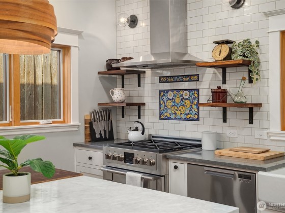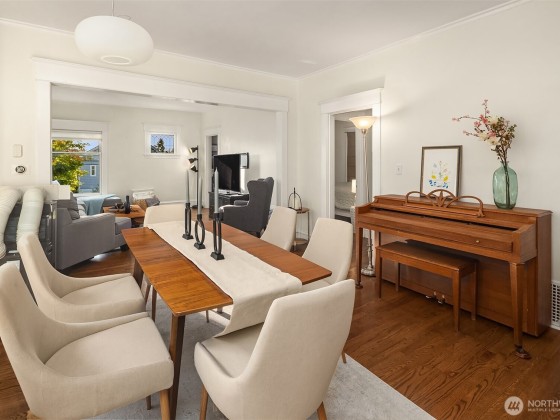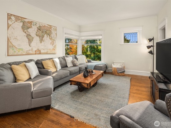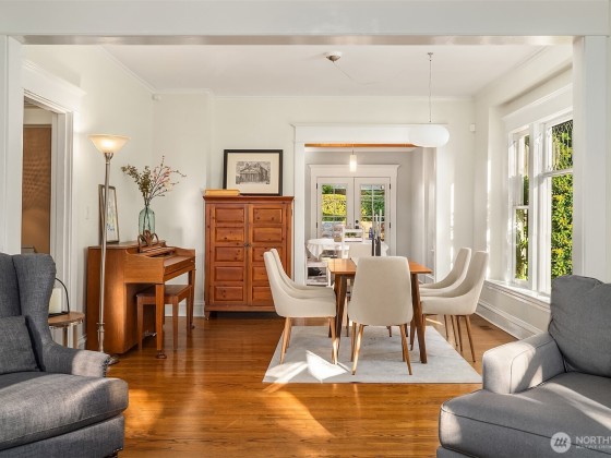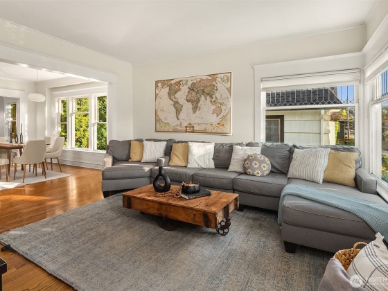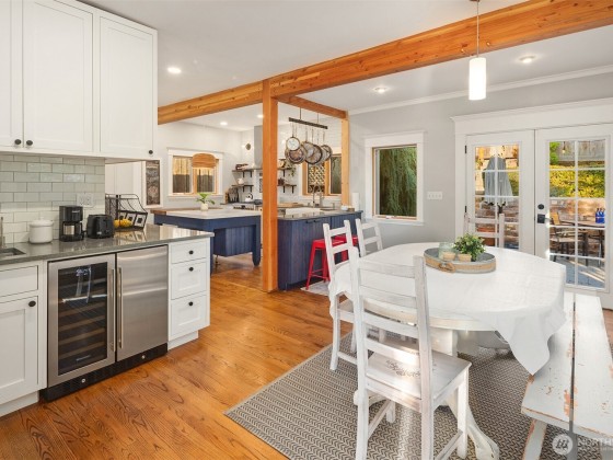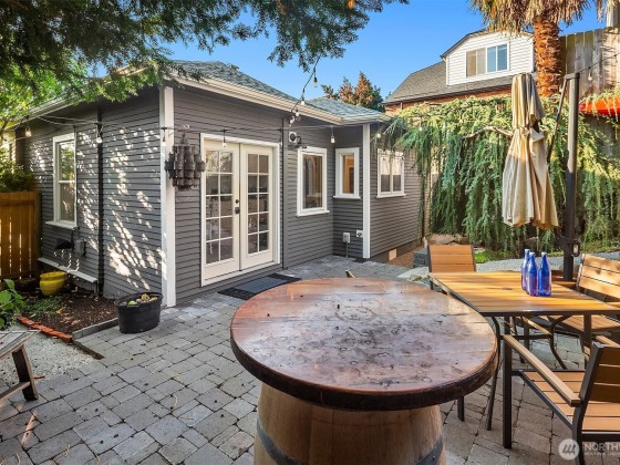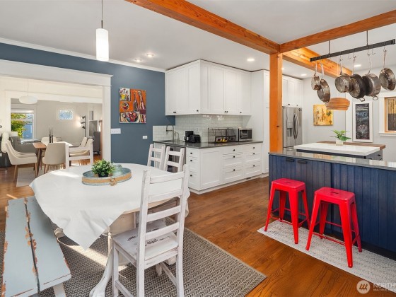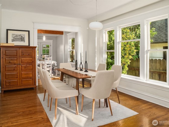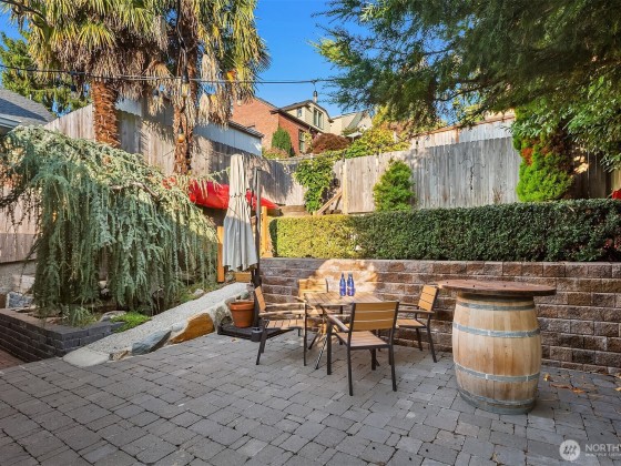 Queen Anne Craftsman w/ timeless charm, this 4-bed home blends historic character w/ stylish & modern updates. Hardwoods throughout. Entertainer’s kitchen features white shaker cabinetry, farmhouse sink, subway tile backsplash, & chef-grade SS appliances: Fulgor, Fisher & Paykel. Spacious gathering island & built-in wet bar w/ beverage cooler create the perfect conversational hub. French doors from dining area open to fully fenced patio for seamless indoor-outdoor living. Lower level includes laundry room w/ utility sink & storage. Easy commute to Amazon & close to everything to love on Queen Anne. Perched above the street for abundant light & privacy.