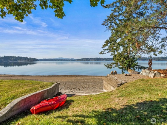 A piece of Paradise! Enjoy nature at its best w/spectacular ever changing westerly sunsets on Totten Inlet from this beautiful Rambler on 91’ of No bank/bulkhead waterfront including grass launch for kayaking, swimming, or simply playing on your beach. Open bright Greatroom concept w/big kitchen, lrg island, dining area & spacious family rm w/vaulted ceiling & cozy wood stove. Delight in a massive wall of windows to rear patio, yard, & endless water views. Primary BR enjoys stunning views w/access to back patio & hot tub. Bonus 3 car detached garage w/huge space upstairs for storage, office space, bonus rm, whatever your needs. Great neighborhood close to DT Olympia, dead end street w/community boat launch. A must see, this one is special!