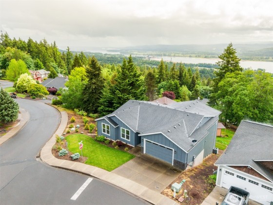 You'll feel like you're floating over the Columbia River from nearly every room in this stunning new home w/ panoramic views! Gourmet kitchen w/ quartz, gas range, and walk in pantry. Tons of countertop space, open to living and dining areas. Living room has built in cabinets and open shelving surrounding the cultured stone fireplace. Electronic blinds for when you need some privacy or shade. Wide vinyl plank flooring throughout. Nice neutral color palette. Luxury primary suite w/ soaking tub, glass shower enclosure and extra large walk in closet. Covered composite deck w/ overhead heaters. Minimal low maintenance landscaping. Located amongst lovely homes just a couple minutes from the charming town of Kalama, riverfront parks, & more!