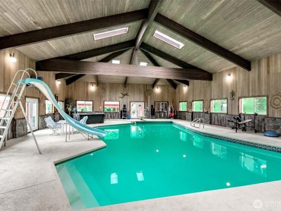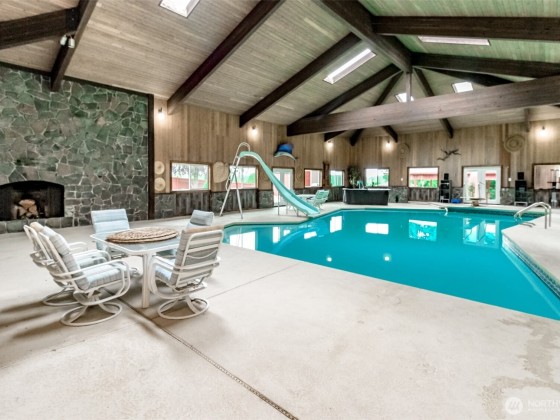 Stunning Mid Century home offered for sale with an incredible view of Mt Rainier! This beautifully renovated former Tanwax golf course residence has the best of both worlds. Originally built in 1964 this estate features unlimited entertainment opportunities with original indoor pool, sports court, sauna, and hot tub. Extensively updated throughout this private estate offers a secure double gated entrance with grand circular driveway and newly built 3 car garage. Renovated in 2020 with modern living features such as open concept kitchen and living space, 3 bedrooms including the primary bedroom with en-suite bathroom, balcony, and walk-in closet. Lower level features second living area with a full bath, kitchen, laundry, & a huge bonus room!