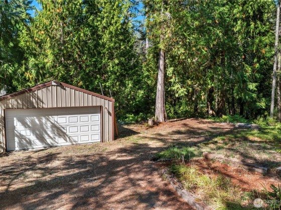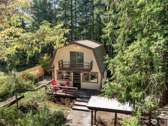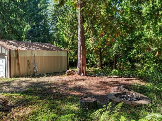 Tucked away on a quiet cul-de-sac near the Lake Cushman Golf Course, this charming cabin sits on a large double lot surrounded by lush gardens and fruit trees. Inside, knotty pine ceilings and chevron-patterned cedar walls create a warm, rustic feel centered around a striking split-face basalt fireplace. Enjoy the detached garage/shop and a powered, insulated shed for projects or storage. Relax by the fire pit, explore the perennial garden, or harvest cherries, pears, apples, plums, and figs from your own backyard. Whether a weekend escape or full-time retreat, this home blends comfort, character, and natural beauty. All of this in addition to the wonderful Lake Cushman amenities - hiking, boating, fishing, golfing, and so much more!