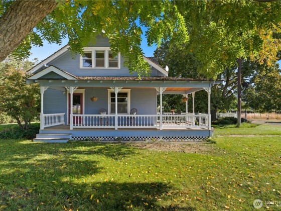 Welcome Home! In the heart of Prosser wine country surrounded by vineyards and hop fields. This timeless classic farm style 3 Bedroom, 2 Bathroom home features original wood floors, millwork, wood windows, and a stunning staircase. Enjoy an open island kitchen with a large window seat, formal dining area, sunroom with walls of windows, and a mud/laundry room with custom cabinetry. Relax on the covered wrap-around porch with updated decking or in the fully fenced backyard with mature trees. Property includes irrigated pasture with full SVID water rights, outbuildings with Vintage shop/carport, and a Traditional Farmhouse Cellar. This one won’t last! Truly a Must See! Contact Your Favorite Real Estate Broker TODAY for a Private Showing!