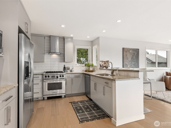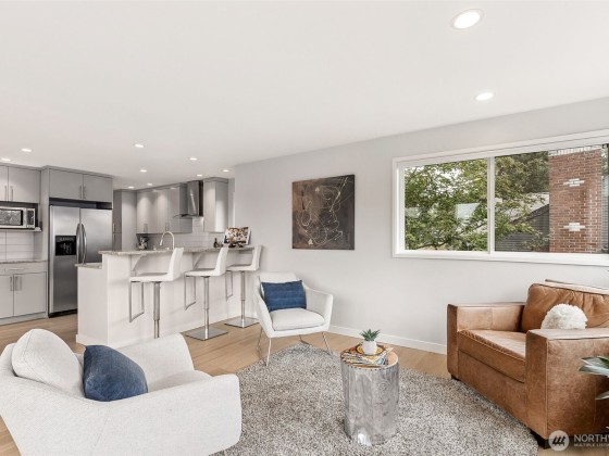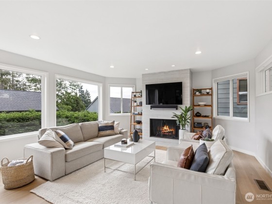 Modern and beautifully updated Contemporary in the heart of Hawthorne Hills, known for its top-rated schools, nearby parks, and convenient shopping. This home offers 4 bedrooms all on the same floor, including a spacious Primary Suite. The open-concept layout is ideal for modern living and entertaining, with stunning new hardwood floors and new carpet throughout. New roof, newer windows and thoughtful updates in every room. Step outside to a large, fully fenced backyard with mature landscaping, ideal for relaxing or hosting, and enjoy gas hook-up at the grill for easy outdoor dining. Large 2-car garage and bonus storage. Mountain & peekaboo lake views. This turnkey home blends comfort, style, & location. Close to Children's, UW & U Village.