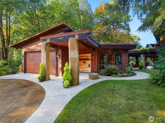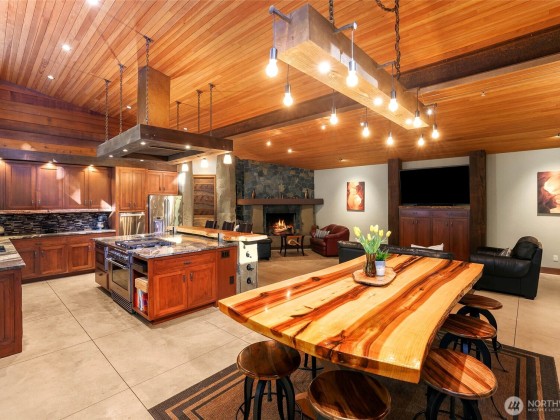 Architectural masterpiece, designed to blend rustic modern elegance w/harmonious indoor-outdoor living. Locally hand-milled & Columbia Basin basalt columns, custom cabinetry & live edge built-ins create a home rooted in nature yet refined in detail. Soaring ceilings, exposed beams & radiant heated floors. ONE level open floor plan anchored by gourmet kitchen w/grand island, dining w/wet bar, greatroom w/stone fireplace, & European-inspired wine room. Dramatic panoramic door opens to covered courtyard w/outdoor kitchen, fire feature & gardens, effortlessly connecting to detached guest casita w/ ¾ bath. The Primary ensuite offers a spa-caliber experience & courtyard access. Oversized garage w/bonus room. Nestled on a goregous wooded 2+acres.