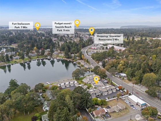 Seller offering $10,000 in buyer incentives toward closing costs, rate buy-down (ask agent for huge rate buy down sheet) , or one year of paid HOA dues! Priced well below market value, this lakeside gem minutes from JBLM, Madigan, and the VA Medical Center offers peaceful waterfront living with everyday convenience. Enjoy lake views from your deck, launch your kayak from the shared dock, and relax in the open-concept interior featuring high ceilings, bamboo floors, large windows, and a cozy fireplace. Upstairs, the private primary suite includes a spa-like bath for ultimate comfort and tranquility.