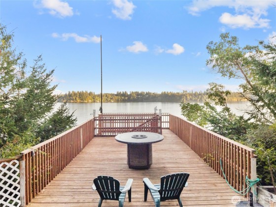 Discover PNW Paradise in one of the most beautiful Islands in the Puget Sound. At the Southern edge of Harstine Island, this hidden gem has complete panoramic views of the Inlet & Mt Rainier. The perfect escape from city life, yet has room for entertaining w/ sprawling decks, open floorplan, lots of parking & even boat-accessible. Lovingly updated, this home has spacious kitchen & dining room w/ vaulted ceilings & cozy woodstove, 2 beds/2 baths, +downstairs Rec room/bonus room & utility 1/2 bath. Two-bay garage, horseshoe pit & over $100k in recent landscaping gives a magical park-like feel! Walk the quality built staircase down to 73' of shoreline w/ tideland rights for oysters, clams & fishing. Community pool & water included in HOA fees.