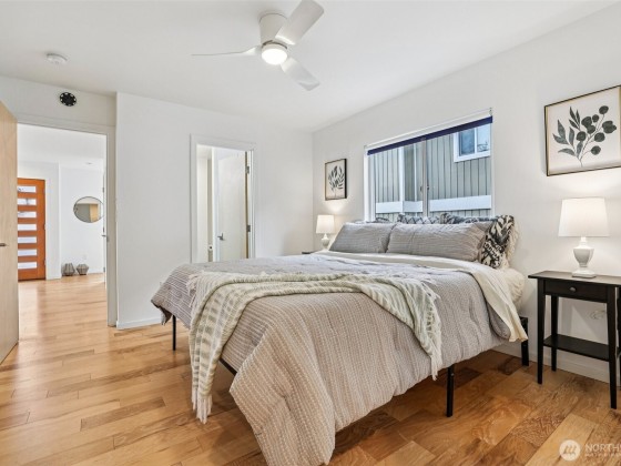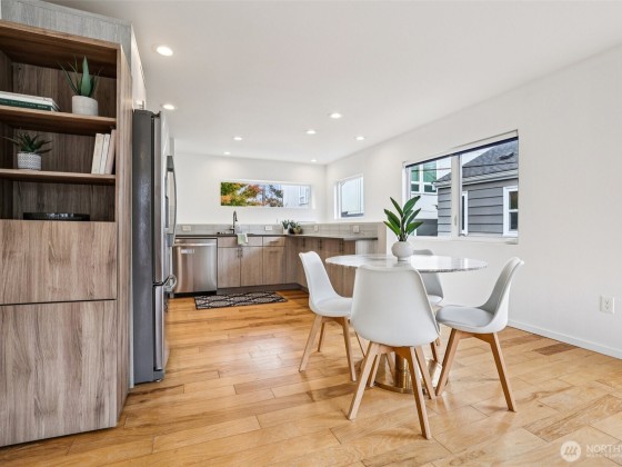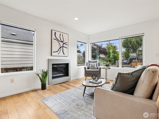 Beach Vibe + Modern Comfort — just one block to Alki beach! This beautifully renovated 4-bed, 2.25-bath home blends indoor/outdoor living with style. Bright, open top-floor layout includes an office nook and gas fireplace. Cook like a chef in the gourmet kitchen that flows to a private backyard patio with hot tub — ideal for entertaining or quiet relaxations. Upstairs, enjoy a spa-style primary suite with dual vanities and a double shower, while downstairs the flexible floorplan offers guest bedrooms with large windows and a media/bonus area. One dedicated parking space in rear & off-street parking. Experience Alki & West Seattle living at its finest!