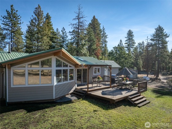 SkyView Acres — a custom-designed home on five acres offering a blend of distinctive craftsmanship and serene natural beauty. An open concept living space bathed in natural light, radiant heat flooring and an updated kitchen featuring granite countertops and Hickory cabinetry paired with vaulted ceiling and skylight. The flex space is over 480 sf of living space that can serve as a bedroom, studio, or home gym. The dining area merges with the large outside deck and close by stands a roll-off roof observatory, a sanctuary for stargazers. Many other amenities await you—schedule your private showing today!