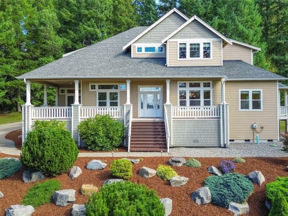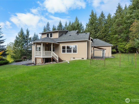 Welcome to the gated community of Eagle Ridge. Perched on the hill side this beautiful 5 acre home has a view of the valley. Well taken care of 3678 sqft home has it all; 3 fireplaces, formal living rm, dining rm, great rm, upstairs bonus rm w/lots of storage, kitchen eating area, office, primary bedrm & main level mother in law suite w/its own bathrm. Gourmet kitchen w/high end appls, granite counters, island, walk in pantry, built in desk & abundance of cabinetry. Spa like primary bathrm w/walk in tiled shower, jetted tub, dual sided fireplace, dual sinks & walk in closet. Beautifully landscaped home has 3 car garage w/plenty of parking, dog run, front deck, back patio & 2nd deck off kitchen.Don't miss the extra storage in the crawl space