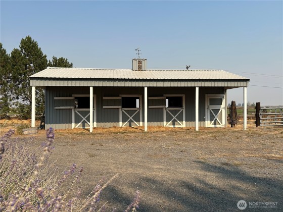 Valley Quality Triple Wide on 10 irrigated acres. 3 beds, den, 2.5 baths. New roof. There is a full concrete foundation under the home. View property to the east & west. Two separate pastures in orchard grass with underground in upper pasture and wheel line on lower pasture. Three car garage w/shop. Three stall horse barn with storage/tack room has power, water and corral. Many mature trees makes this a park like setting. Green house and large garden area with many flowers planted for pollinators. Just 10 minutes from town. Block 40, East Columbia Irrigation, approx. $1100/year for water & power. There is a water assoc. for irrigation water. No HOA. Private well and septic. Ring cameras excluded. Seller is a WA State licensed broker.
