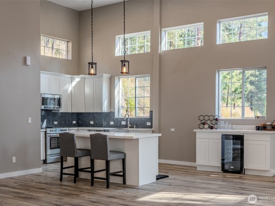 Discover the allure of Merry Canyon with this 2023 mountain modern cabin on 2.77 acres, ideally located between Leavenworth and Plain. Enjoy year-round adventure with direct winter access to snowmobiling and endless Forest Service roads for summer exploring. The home offers 2 bedrooms plus a 3rd flex room/office, soaring ceilings, and open-concept living with abundant natural light. The chef’s kitchen features quartz counters, a large island, stainless appliances, wine fridge, and herringbone backsplash. The primary suite includes an electric fireplace, walk-in closet, spa-like bath, soaking tub, and custom tile shower. Outside, the property is a blank canvas for your future development.