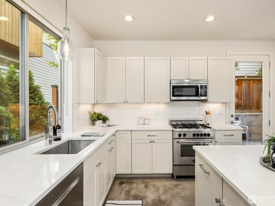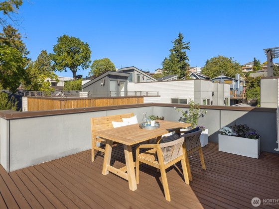 Living made easy! With the turn of a key, this stunning 3 bedroom home can be your sanctuary from the world outside. Set on the western slope of Queen Anne with stunning views of the Olympics, Puget Sound & all points west, this home is ready for YOU! From the moment you enter, floor to ceiling windows envelope you in light. A smartly appointed kitchen boasts gas cooking, quartz countertops & space to gather. Upstairs, you'll find generous bedrooms, including a primary en-suite with a HUGE walk-in closet. Enjoy a cool, flex space with a wet bar; perfect for an office, media center or yoga/play room. The creme de la creme is the massive roof top deck, perfect for fabulous, sunny or starlit entertaining. Minutes to SPU, shops & restaurants!