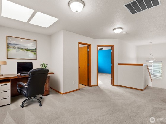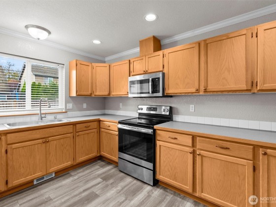 Well maintained and move-in ready, this 2,376 sq ft 4-bedroom Stonegate at Avonlea home offers space and comfort in one of Lacey’s most convenient neighborhoods. The main level features new solid-surface flooring, a front living room plus a great room with gas fireplace, and an open kitchen with abundant counter space, stainless sink and appliances, and a spacious walk-in pantry. Upstairs, the primary suite includes a 5-piece bath and walk-in closet, plus three additional bedrooms and a versatile loft for office, media, or play. Fully fenced yard with patio, one-year-old roof, central A/C, and a two-car garage. Sidewalks, nearby parks, and quick access to I-5, shopping, restaurants, and North Thurston schools. (Some photos virtually staged)