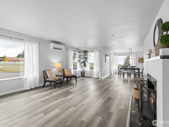 Charming Port Angeles home with ocean and mountain views! This lovely 2-bedroom, 2-bath home offers comfort and versatility on a desirable corner lot. The main level features a bright living room with a cozy fireplace, dining area, eat-in kitchen. 2 bedrooms and 1 bath. Enjoy new flooring throughout and a new heat pump on both levels for year-round comfort. The lower level adds bonus living space with a family room, laundry area, and additional bath. Relax on the covered front porch while taking in the views. Plenty of storage in the garage. Conveniently located near shopping, schools, and downtown — this home blends comfort, function, and an ideal Port Angeles location.