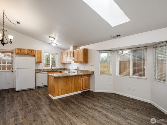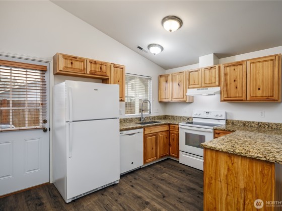 Come Home for the Holidays! Adorable Rambler with open floor plan, living room dining and kitchen with laminate flooring with vaulted ceiling for that big open feel! Newer cabinets and appliances, granite countertops with an eating bar, out to the back patio area and fenced backyard for privacy. This home features 3 bedrooms and 1 bath with laundry area, new carpet, 2 car attached garage and driveway parking. Close to shopping, medical centers and hospital, restaurants and I-5 for easy commute.