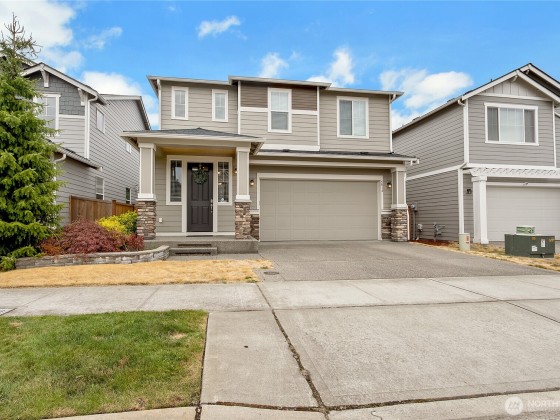 PRICE IMPROVED! The must-see this well-maintained Lowrey home floor plan which provides 2 floors of generous 2,500 sq ft of living space with 3 bedrooms and 2.5 bathrooms. The main floor boasts a study, a powder room, an open great room w/ fireplace and a well-appointed kitchen that includes a center island, walk-in pantry and adjacent dining area. Upstairs, discover a large loft and three bedrooms, including a spacious primary w/private bath & walk-in closet. Cozy backyard offers ample outdoor space for entertaining and evening BBQ's Community offers parks, sport courts and walking trails. Close to shopping, schools and quick access to I-5 and 25 mins to JBLM Mounts Gate Road (RCF Gate) Home comes with a 1 yr warranty to new home buyer.
